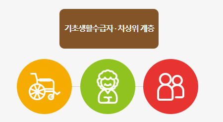 차상위계층: 차상위 자활근로자, 장애 수당수급자, 본인부담 경감대상자, 장애인연금 수급자, 저소득 한부모 가족 및 차상위계층 확인서를 발급한분을 차상위계층으로 합니다.