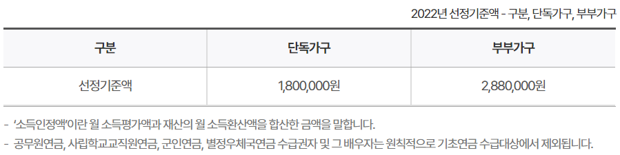※ 다만, 일시금으로 받는 금품은 재산으로 산정됩니다.