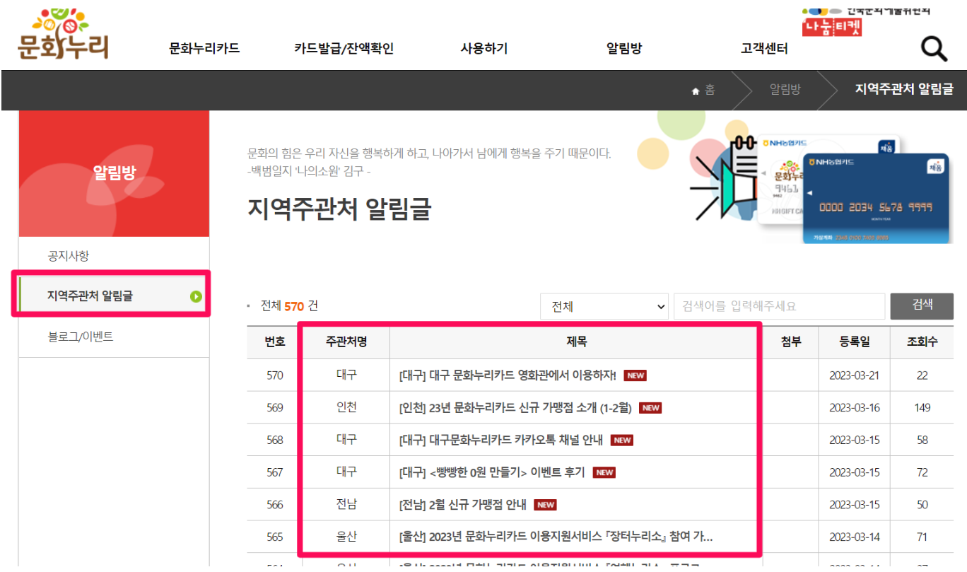 문화누리카드는 문화 격차 해소를 목적으로 하는 공익 사업으로, 다양한 혜택을 제공하며 기초생활수급자와 차상위 계층에게 지원됩니다. 자동 재충전 기능, 모바일 앱 서비스, 비대면 사용처 확대 등 발전을 매해 거듭하고 있으나 문화누리카드 사용처도 해가 다르게 늘어가고 있습니다. 특히 매달 업데이트되는 지역주관처 알림글을 통해 문화누리카드 사용처를 더욱 집약적인 정보로 확인할 수 있으니 홈페이지를 방문하시면 도움이 될 것입니다. 감사합니다.