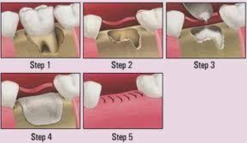 추출 혹은 채취한 임플란트 뼈이식 재료는 원하는 위치에 배치됩니다. 어떤 경우에는 이식편을 덮기 위해 특수 막을 사용할 수 있습니다. 이 막은 연조직 및 박테리아가 뼈 이식편으로 침입하는 것을 방지하고 뼈 재생을 도와줍니다.