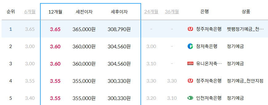 12개월 금리 비교 (2024년 기준)