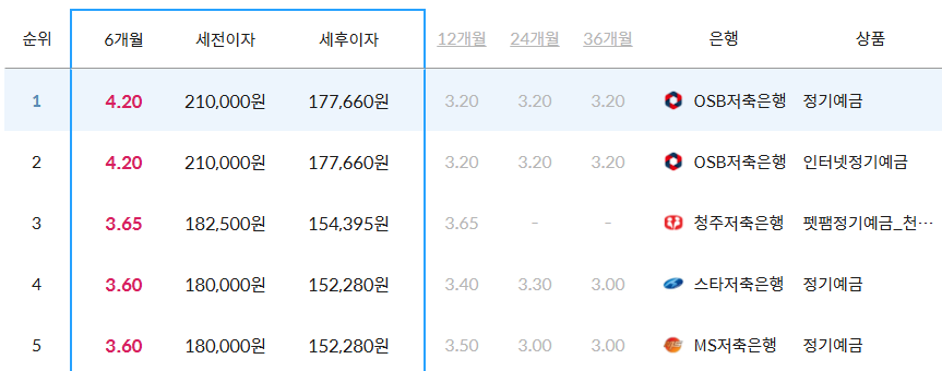 6개월 금리 비교 (2024년 기준)